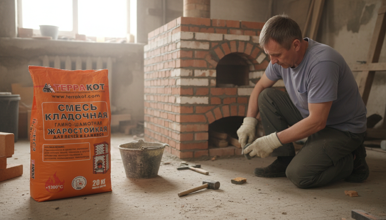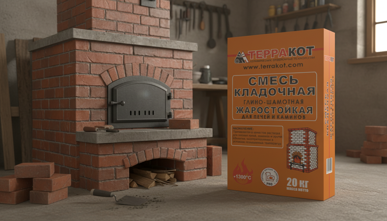 Строительство каминов, печей и других нагревательных устройств не обходится без выбора кладочной смеси. Она должна отвечать основному требованию — выдерживать нагрев без потери физико-химических свойств. Для кладочных работ оптимально подходит глино-шамотная смесь «Терракот», в составе которой находятся термически устойчивые компоненты.