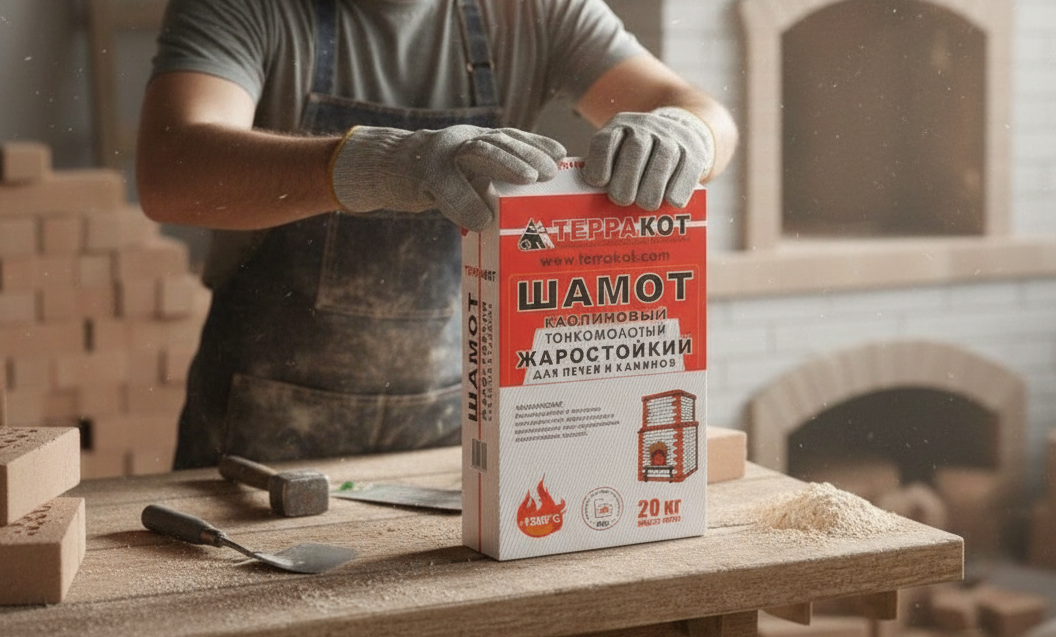 Шамотная глина Терракот — это сухие жаростойкие смеси, выдерживающие нагрев выше 1400 °C без потери первоначальных физико-химических свойств. Они состоят из огнестойкого минерала каолина и присадок, обеспечивающих пластичность готовых растворов.